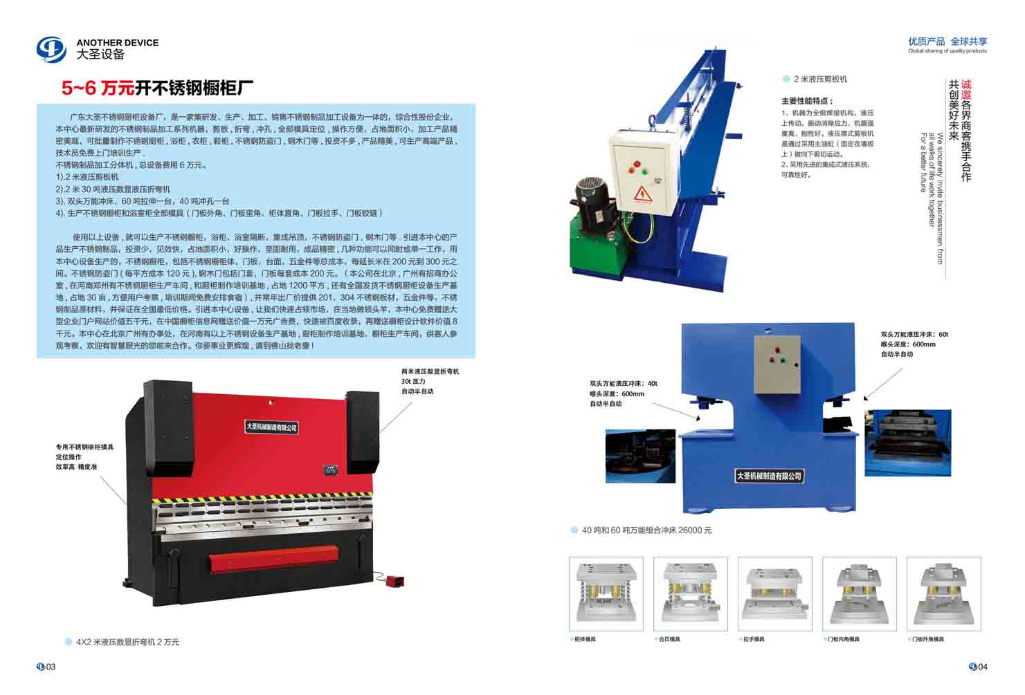 more+六萬元開不銹鋼櫥柜廠,剪板機,折彎,機雙頭自動沖床全部模具